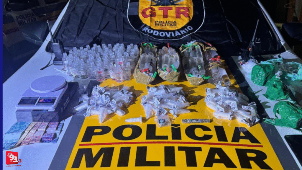 Na ação foram apreendidos 61 pinos de cocaína, 116 frascos de Lança perfume, duas porções de maconha, uma balança de precisão, dois rádios comunicadores, um telefone celular, além de material para dolagem e R$ 177 em dinheiro.